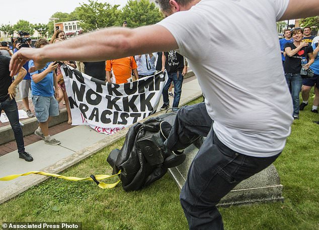 Протестующие в Северной Каролине опрокинули статую конфедератов после насилия в г. Шарлоттсвилль. Статуя, которая изображает одетого в мундир и вооруженного солдата Конфедерации, стояла на вершине с гравировкой на постаменте с надписью: “В память мальчишки, который носил серый мундир’. ” Он был возведен в 1924 году и составлял 15 футов высотой, согласно мемориальной базе. С одной стороны на гранитном постаменте изображен флаг Конфедерации.