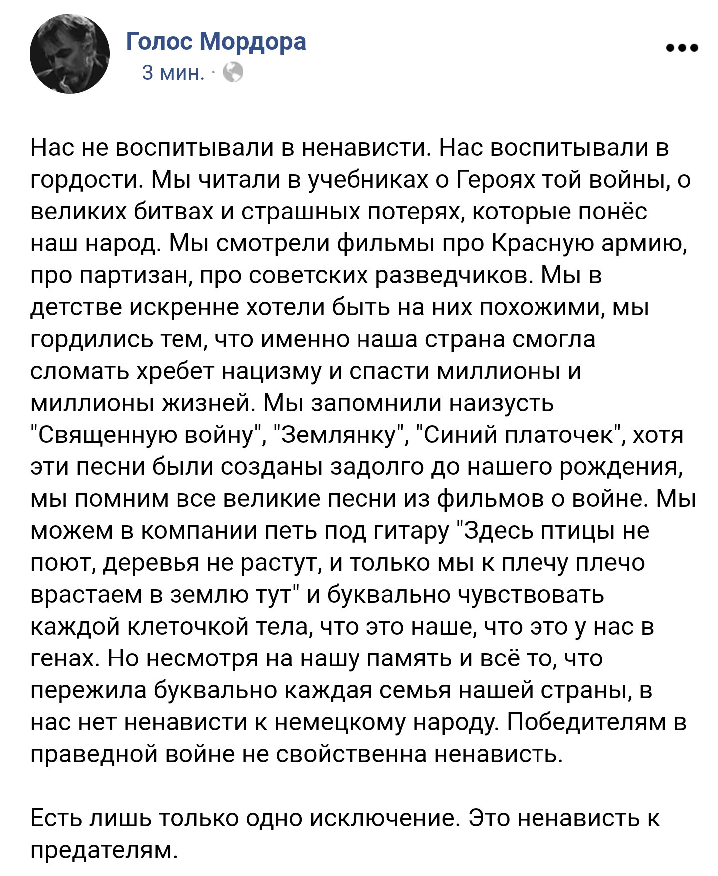 "Получается, что его с чьей-то подачи стадно обвиняют в сострадании к врагу? Такое сострадание проявляли непосредственные участники событий. Кто вы такие, и какое у вас на это право?"