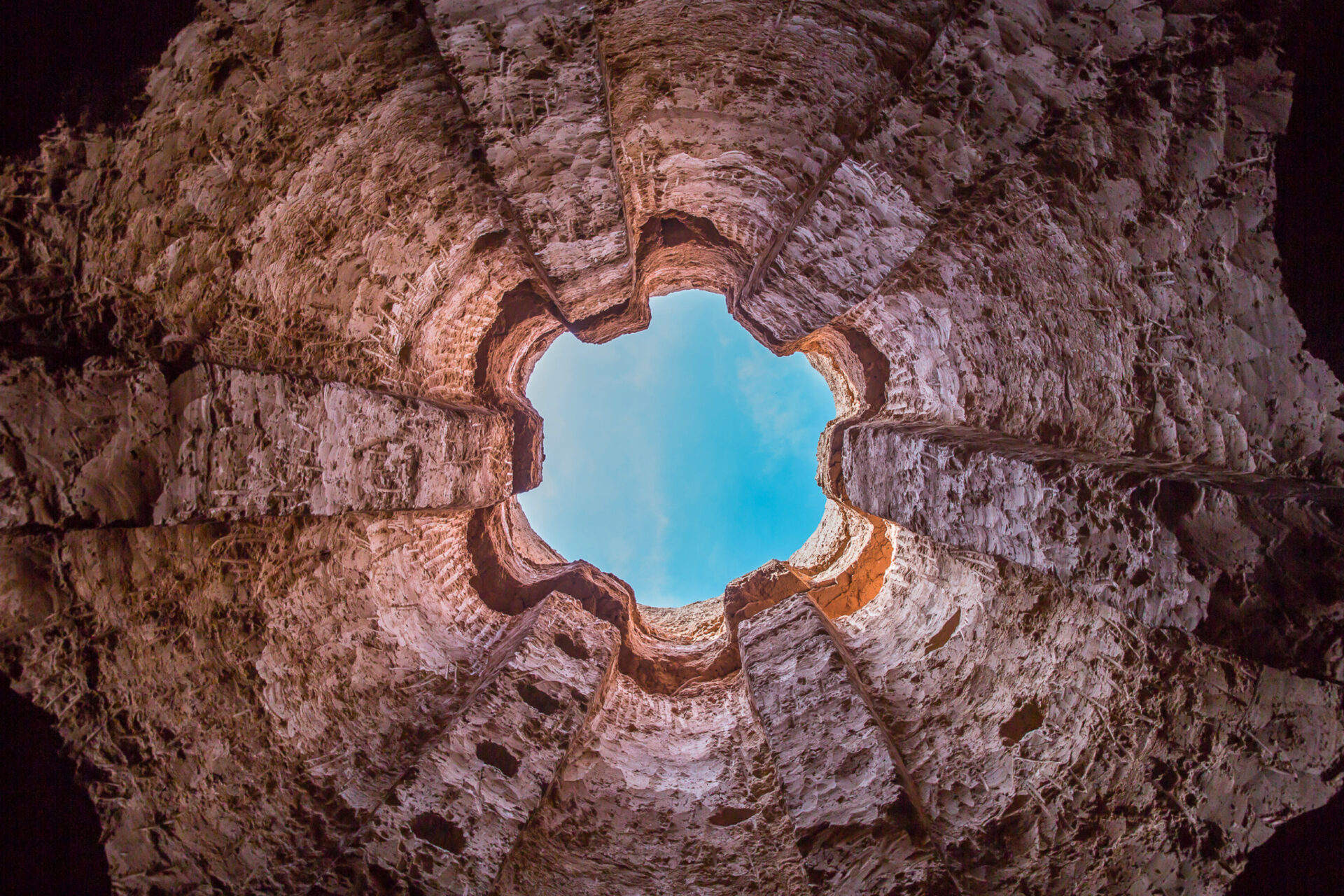 Вид снизу в одном из колодцев канала (у нас эти каналы называют «канатами», но на фарси первый согласный звук звучит как нечто среднее между «г» и «к»).