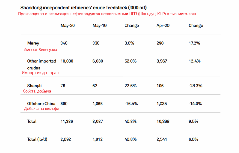 Табл.1 Источники сырья для независимых китайских НПЗ ('000 тонн). Импорт из Венесуэлы учитывается отдельно.