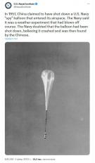 В 1957 году Китай заявил, что сбил "шпионский" аэростат ВМС США, который вошел в его воздушное пространство. Военно-морской флот в свою очередь заявил тогда, что это был метеорологический зонд, используемый в научных целях, который сбился с курса. Военно-морской флот сомневался, что аэростат был сбит, полагая, что он разбился, а затем был найден китайцами.
